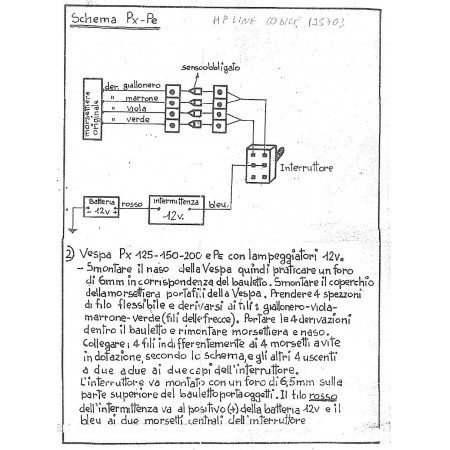 (R.15364) Vendo intermittenza da 12 Volt per luci di emergenza nuova per Piaggio Vespa PX e PE 125 - 150 - 200 cc originale epoca HP Line con codice 505/PX marchiata EMB  , per schema elettrico e istruzioni montaggio vedere foto