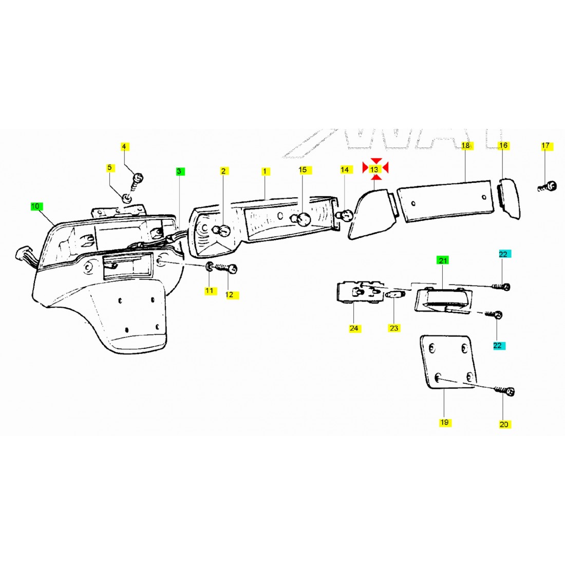 (R.15757) Vendo lente lampeggiatore indicatore direzionale posteriore sinistro nuovo per Piaggio Sfera 50 - Sfera Maquillage 2 dal 1991 con codice Piaggio 290941 e marchiato Triom 210569 S 12 E3 R10W 50R0046879 , per applicazioni ed esploso vedere foto