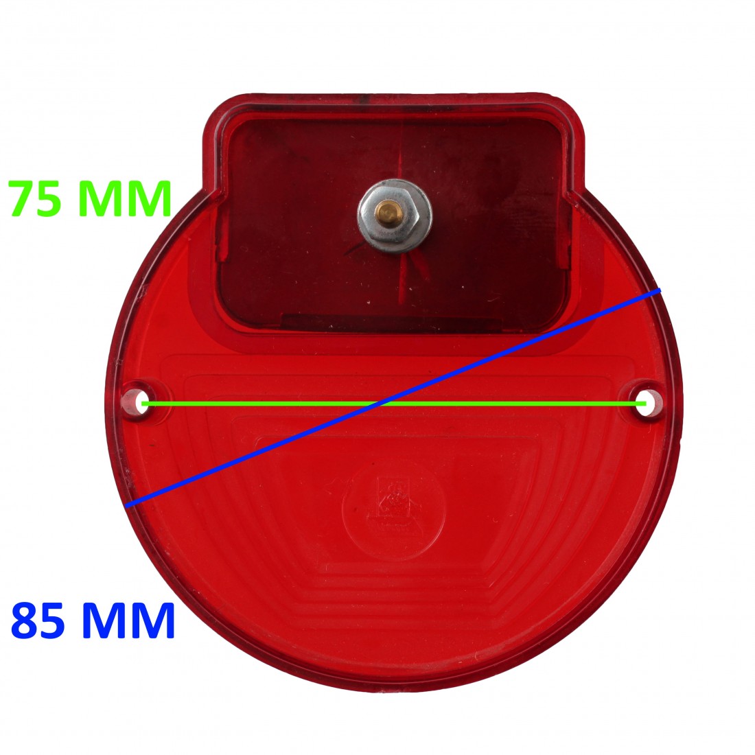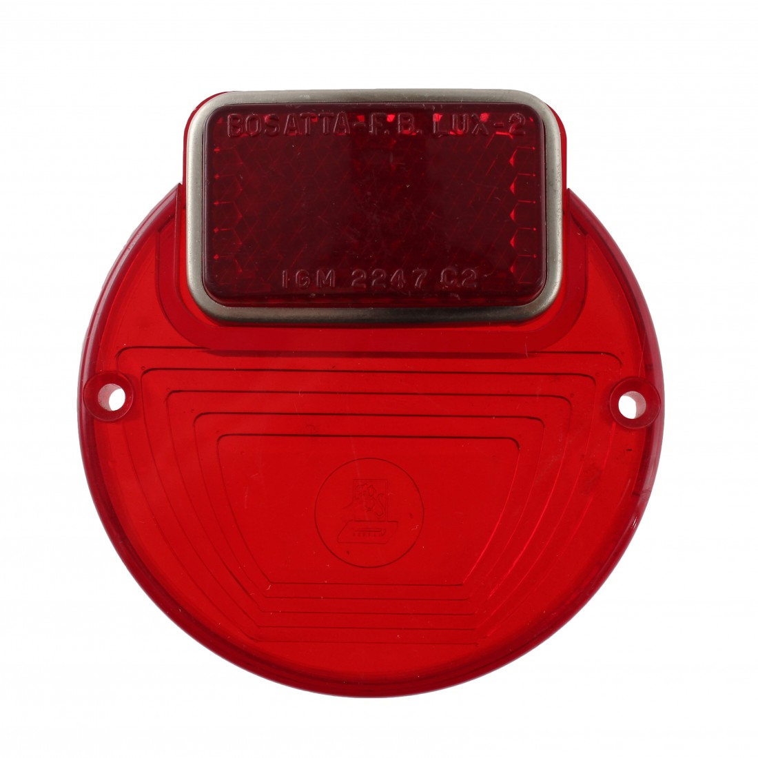(R.7512) Vendo gemma fanale posteriore con catadiottro nuova per moto vintage anni 70 e 80 tipo Moto Guzzi Airone marchiata IGM 2247 C2 con interasse fori di fissaggio 75 mm e diametro esterno 85 mm con codice Bosatta RP 103 con leggeri segni di magazzinaggio e parte superiore della cromatura segnata coma da foto , per misure vedere foto