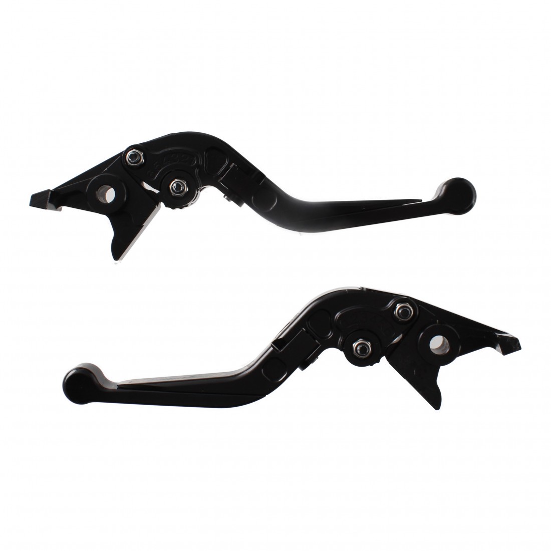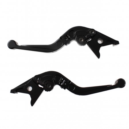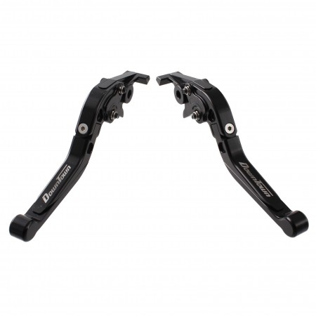 (R.16716) Vendo coppia leve freno e frizione usate pari al nuovo estensibili e pieghevoli per Kymco Downtown 125 - 200 - 300 - 350 cc di colore nero con scritta Downtown bianca , il prezzo si intende per la coppia