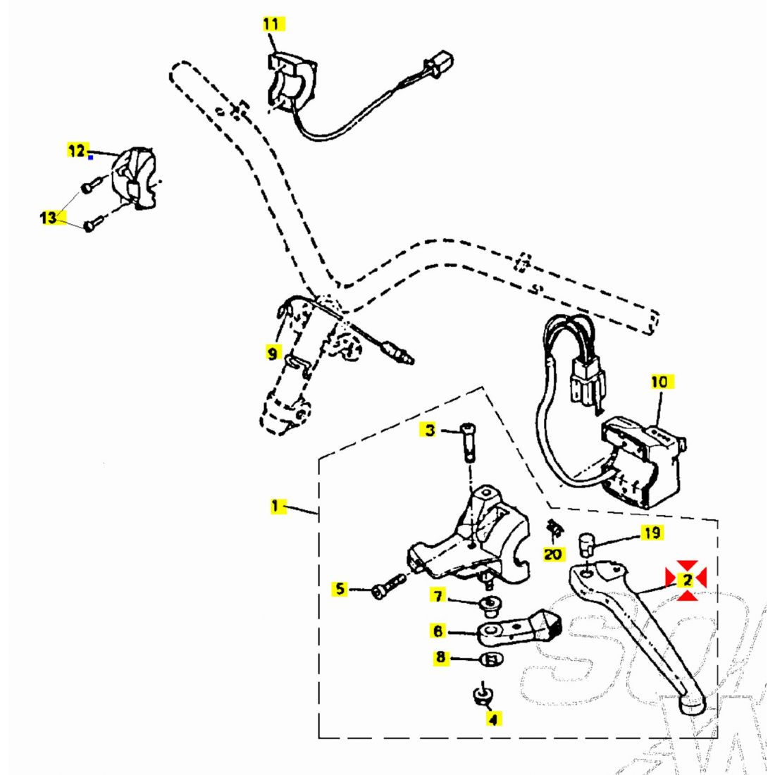 (R.23524) Vendo leva sinistra del freno nuovo per MBK Booster NG Rocket Track Spirit 50 dal 1995 , Yamaha Booster Next Gen Bump 50 dal 1997 - CW RS Spy 50 dal 1995 simile a codice Yamaha 4SBH39120000 , per applicazioni e spaccato vedere foto