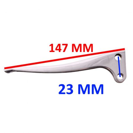 (R.24644) Vendo leva freno e frizione nuove in lamiera stampata e cromata per ciclomotori vari vintage con lunghezza 147 mm e interasse fori di fissaggio con barilotto di 23 mm , il prezzo si intende per singolo pezzo , per misure vedere foto
