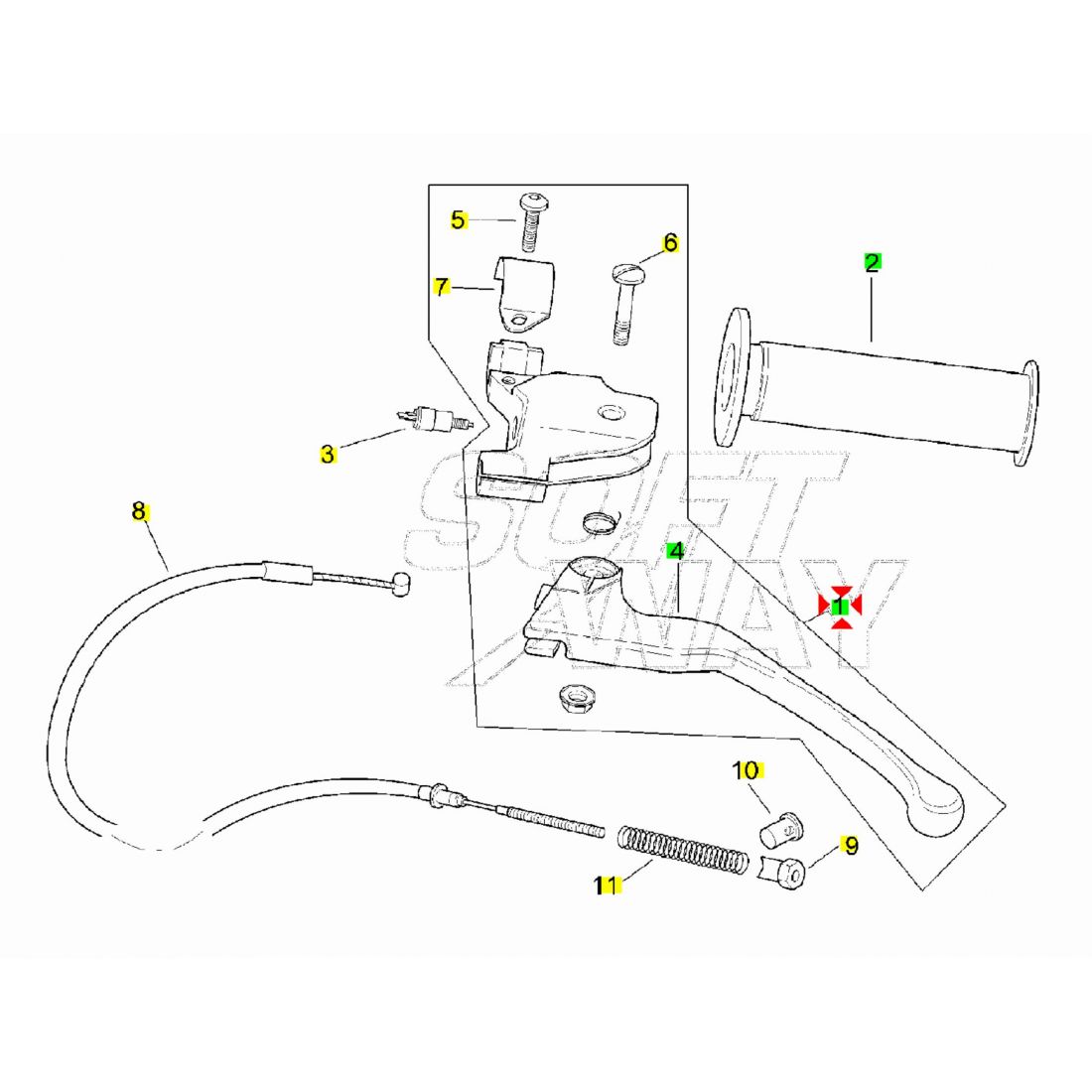 (R.25286) Vendo comando sinistro del freno posteriore usato per Aprilia SR 50 , 125 cc - SR WWW 50 cc - SR Stealth 50 cc - SR raffreddamento a liquido 50 cc - Rally 50 cc - Mojito 125 cc - Mojito Retro 50 , 125 cc - Gulliver e Gulliver LC 50 cc - Amico 50 cc con codice Aprilia AP8218236 , per applicazioni e spaccato vedere foto