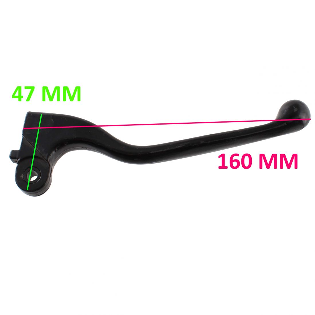 (R.12655) Vendo leva freno lato destro nuova in alluminio di colore nero con leggeri segni di magazzinaggio per Malaguti 50 Enduro - Aprilia ETX 50 cc - Fantic Oasi 50 cc - Garelli Raider 50 cc , con diametro interasse dei fori di 27 mm , con lunghezza totale leva di 160 mm e altezza leva di 47 mm e lo spessore di 14 mm , per misure vedere foto