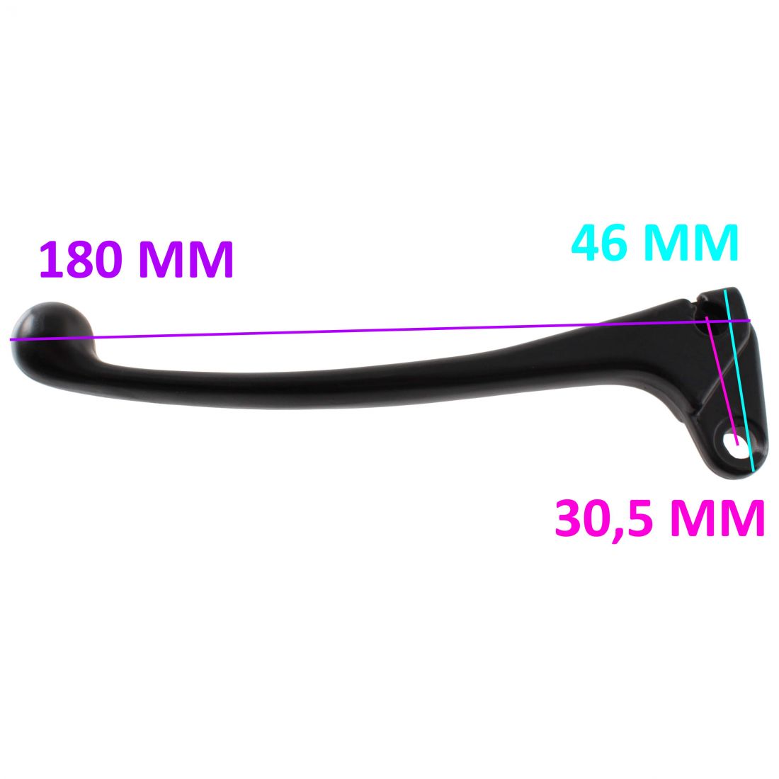 (R.12657) Vendo leva freno lato destro nuova per freno a tamburo (no freno a disco) per Cagiva in alluminio di colore nero , con leggeri segni di magazzinaggio , con interasse dei fori di 30,5 mm , lunghezza totale leva di 180 mm , per misure vedere foto