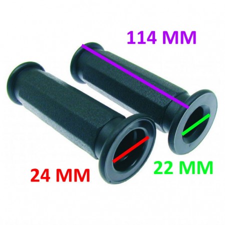 (R.15497) Vendo coppia manopole ottagonali sinistra e destra nuove per Piaggio Ciao PX e Piaggio Si fino al 1988 in gomma nera con diametro sinistro di 22 mm e diametro destro di 24 mm e lunghezza di 114 mm , per misure vedere foto , il prezzo si intende per la singola coppia