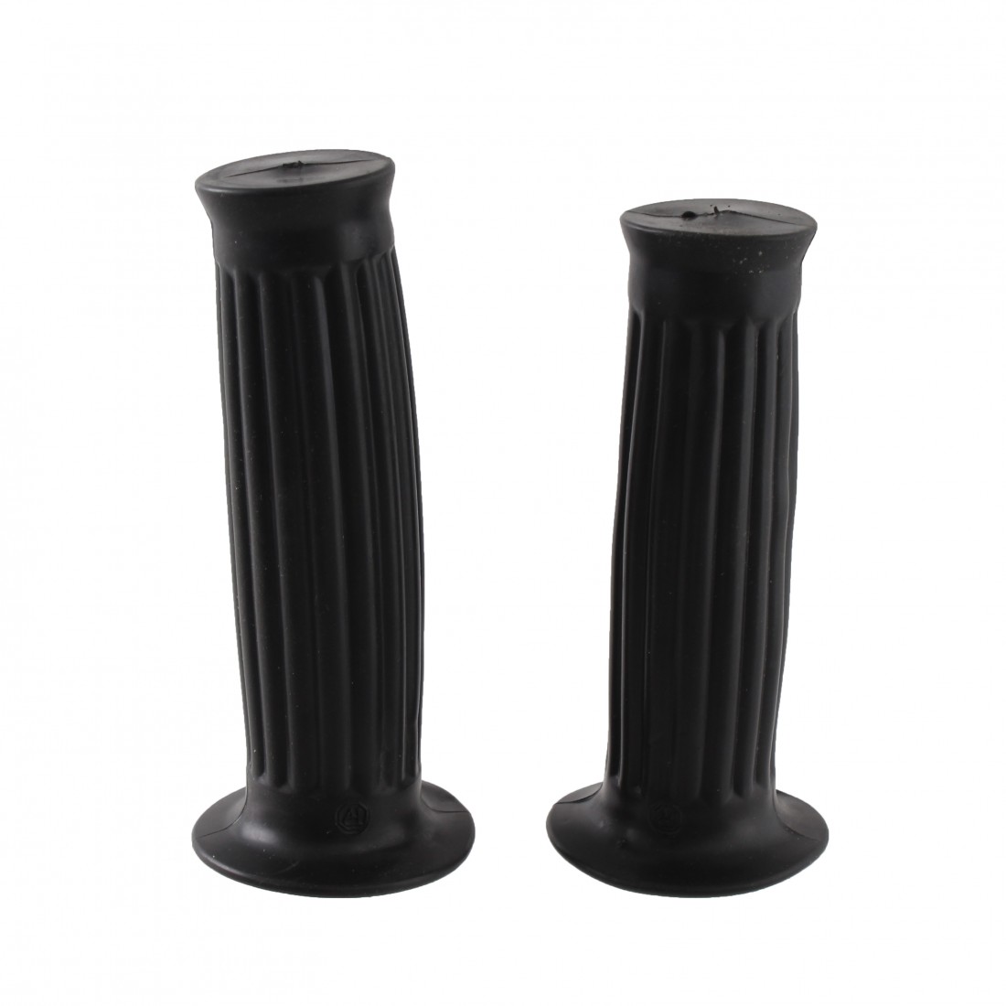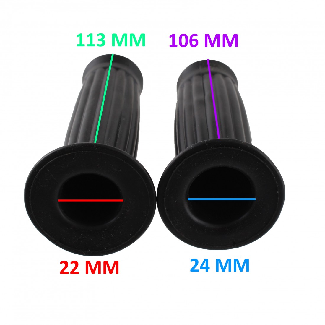 (R.16522) Vendo coppia manopole nuove marchiate P.V. con diametro interno manopola sinistra di 22 mm e altezza di 113 mm e diametro interno manopola destra di 24 mm e altezza di 106 mm