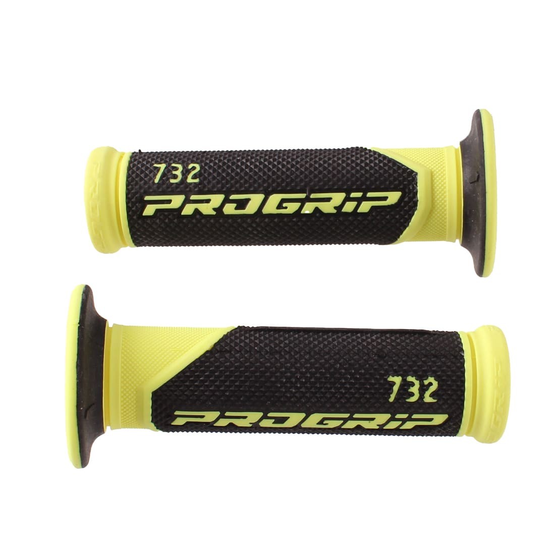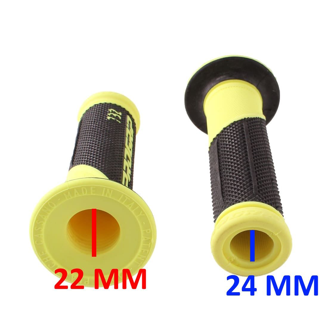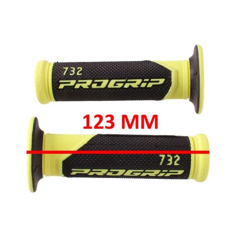 (R.19865) Vendo coppia di manopole con foro passante nuove marca Progrip con codice 732 con fori 24 e 22 e lunghezza 123 mm con scritta Progrip 732 gialle e nere, il prezzo si intende per la singola coppia , per misure vedere foto
