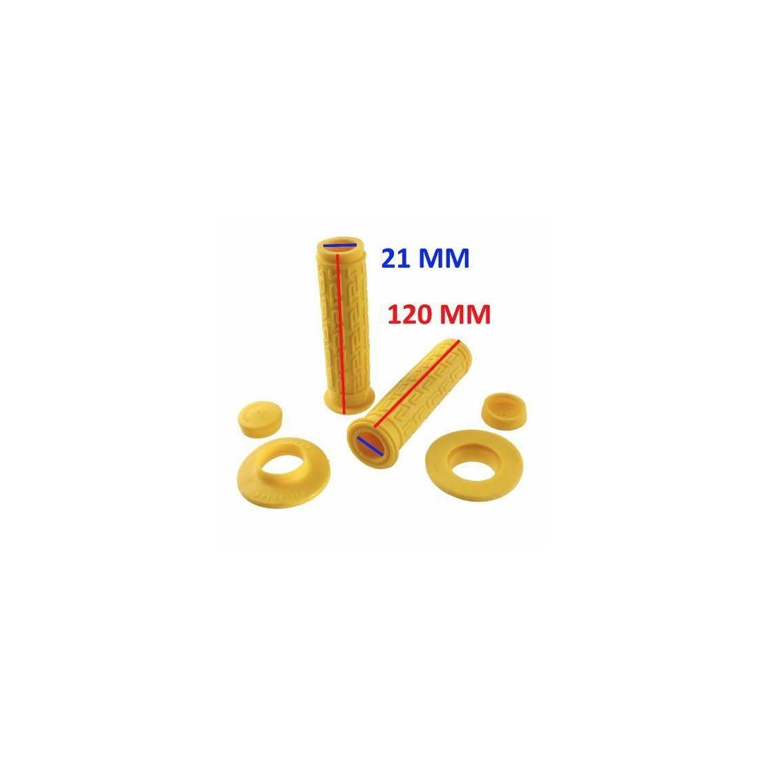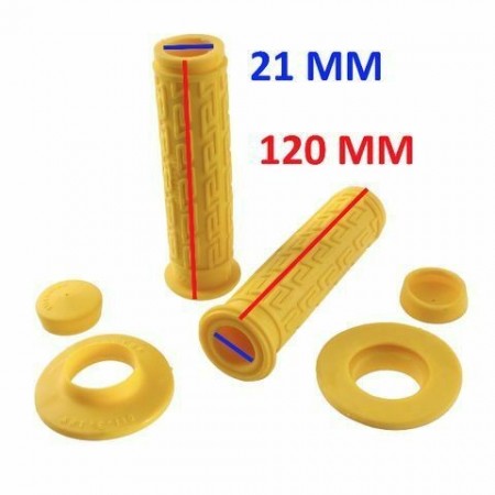 (R.11313) Vendo coppia manopole di gomma nuova per BMX marca Stilmotor colore giallo con lunghezza 120 mm e diametro 22 mm, per misure vedere foto