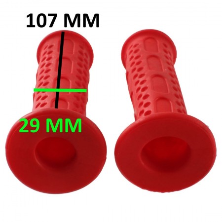 (R.21364) Vendo coppia manopole nuove per Piaggio Ciao di colore rosso con diametro 22 e 24 e lunghezza 107 mm e larghezza battuta della mano da 29 mm , il prezzo si intende per la singola coppia , per misure vedere foto