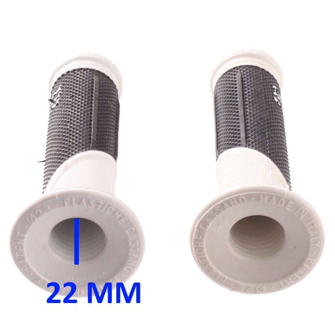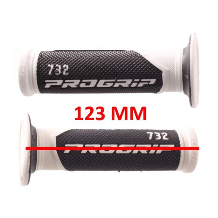 (R.21844) Vendo coppia di manopole nuove per Vespa bianche e nere entrambe con foro da 22  marca Progrip con codice 732 , lunghezza 123 mm con scritta Progrip 732 , il prezzo si intende per la singola coppia , per misure vedere foto