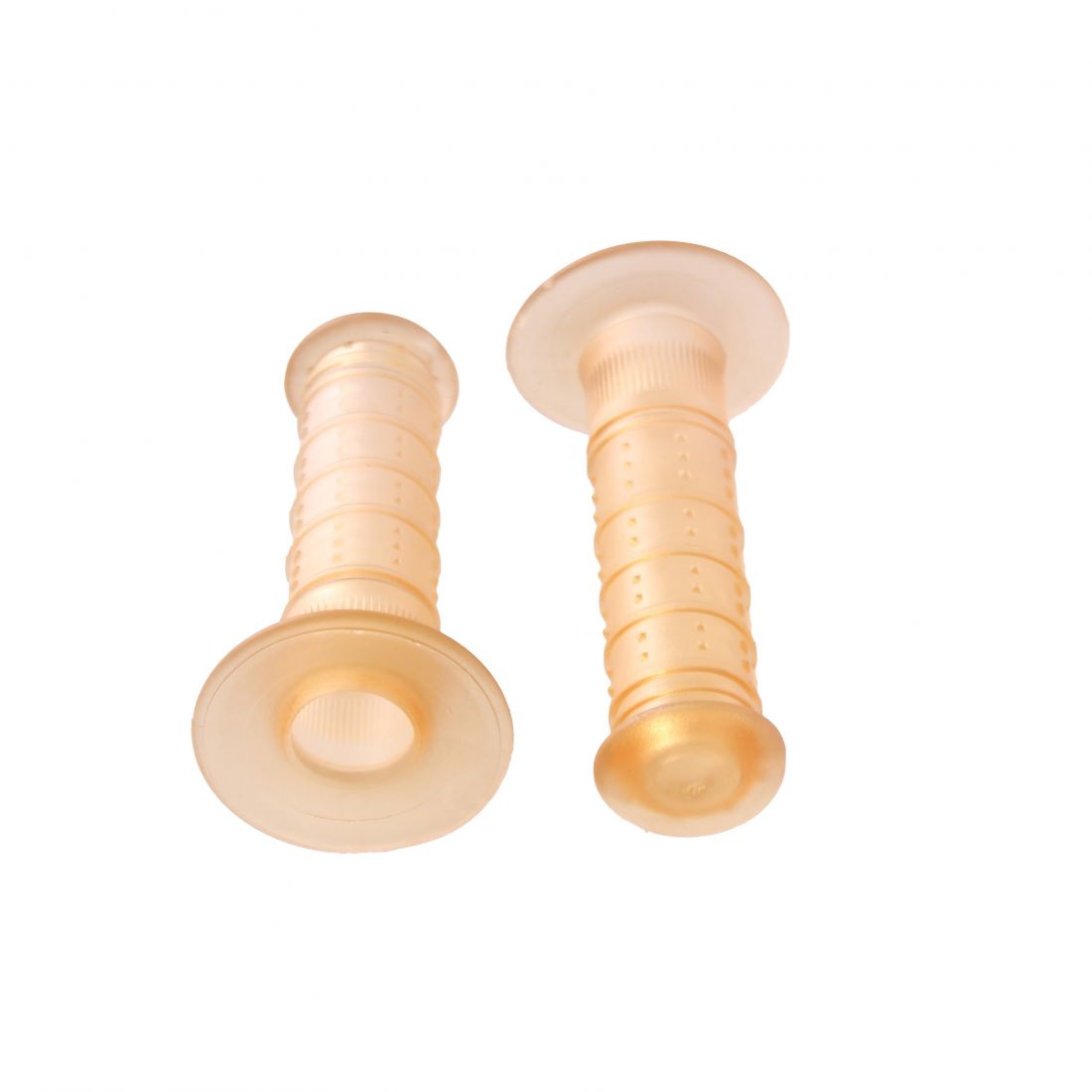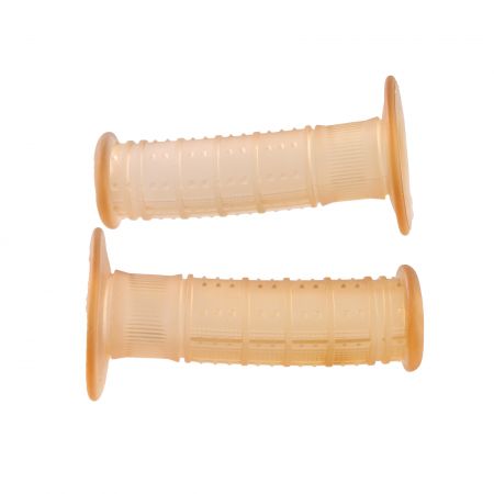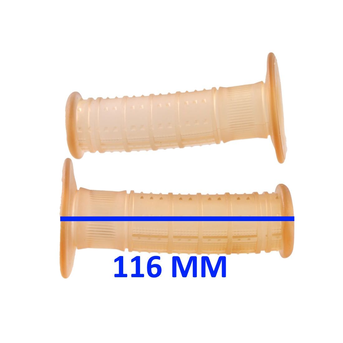 (R.21882) Vendo manopole in gomma trasparenti nuove per ciclomotori vari epoca con lunghezza 116 mm e diametro fori 22 e 24 mm , per misure vedere foto
