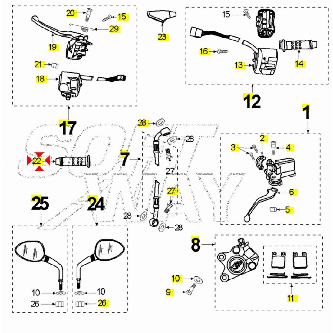 Manopola sinistra Peugeot Elystar -...