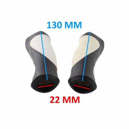 (R.14847) Vendo coppia manopole in gomma ergonomiche nuove per biciclette varie di colore nero e bianco con diametro foro da 22 mm e lunghezza 130 mm , il prezzo si intende per singola coppia , per misure vedere foto