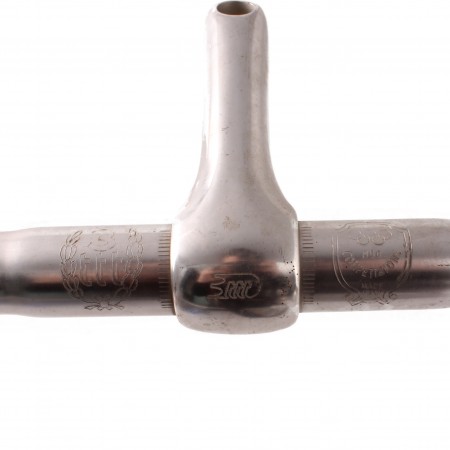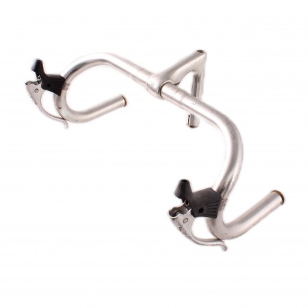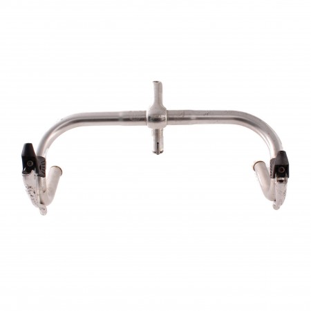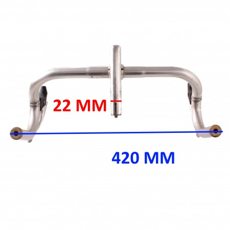 (R.17058) Vendo manubrio usato con pipa in alluminio per bici tipo corsa marca 3M con diametro pipa sul canotto da 22 mm e ampiezza manubrio 420 mm , per misure vedere foto