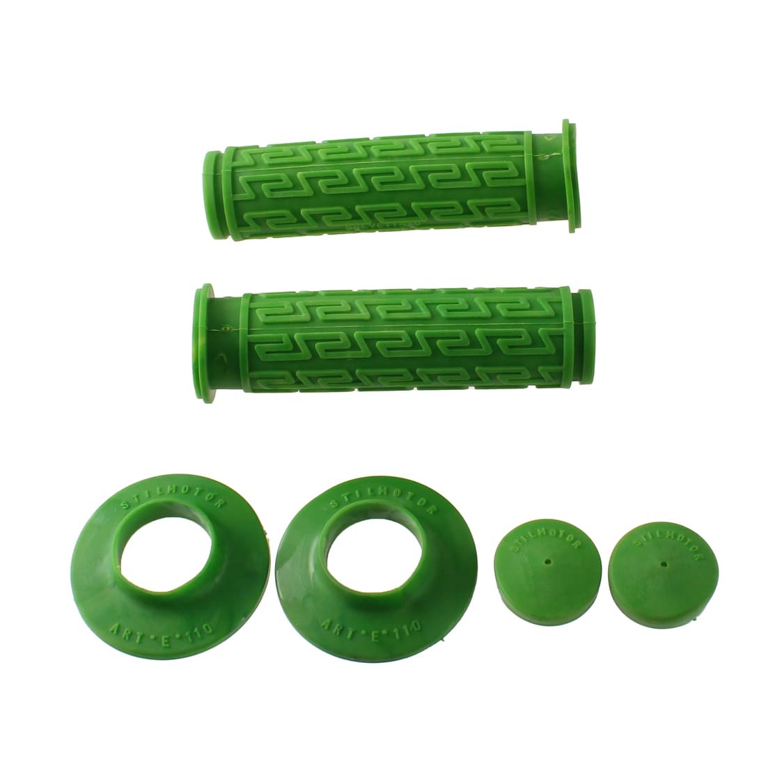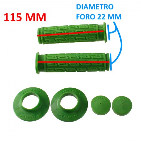 (R.19601) Vendo coppia manopole in gomma nuove per bici varie vintage marca Stilmotor con codice E110 di colore verde con lunghezza 117 mm e diametro fori 22 mm , il prezzo si intende per la coppia , per misure vedere foto