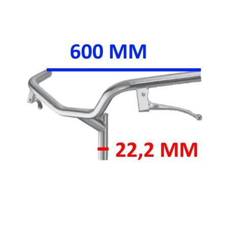 (R.22899) Vendo sterzo nuovo per biciclette varie con diametro canotto da 22 mm e larghezza di 600 mm in acciaio cromato completo di leve freno , per misure vedere foto
