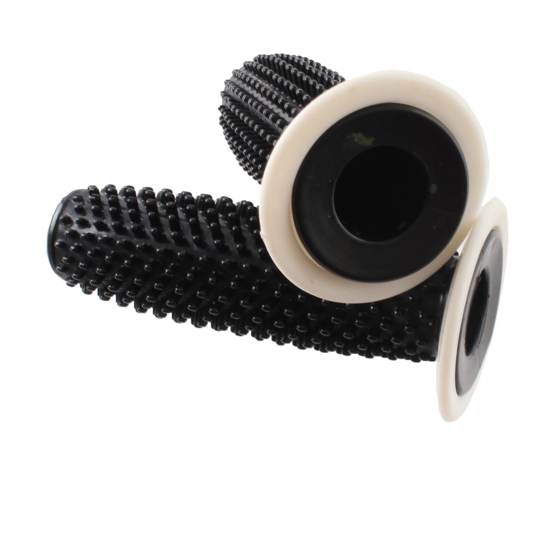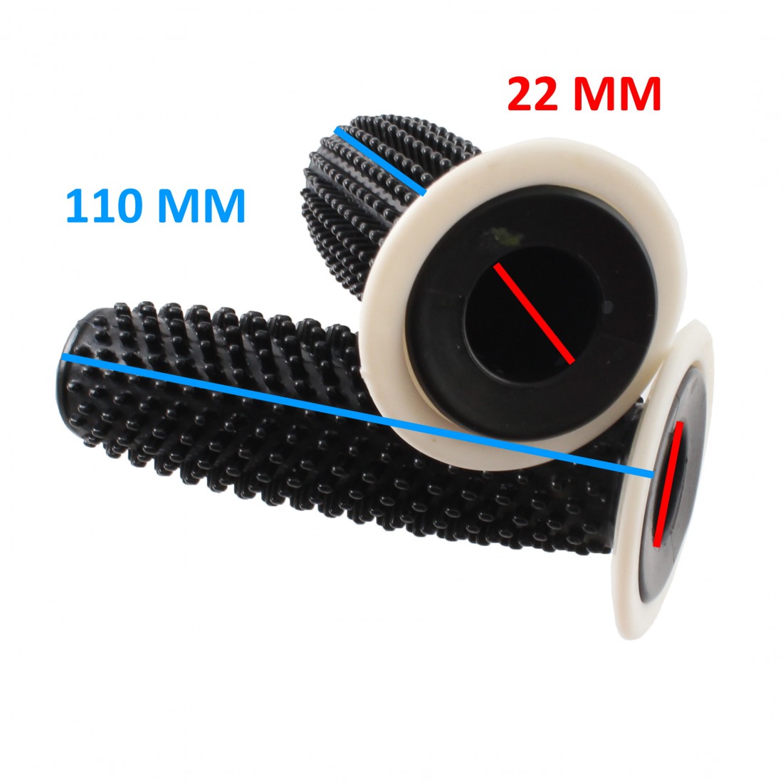 (R.14342) Vendo coppia manopole puntinate nuove per biciclette varie epoca in gomma di colore nero con diametro entrambi fori da 22 mm e lunghezza 110 mm , il prezzo si intende per la singola coppia , per misure vedere foto