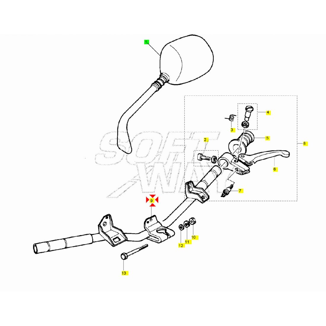 (R.23515) Vendo manubrio nuovo per Piaggio Sfera e Sfera Maquillage 2 cilindrata 50 dal 1991 simile a Piaggio 268100 , per applicazioni e spaccato vedere foto