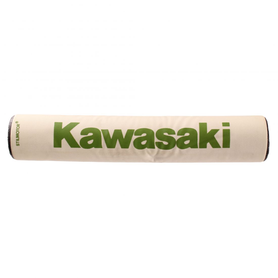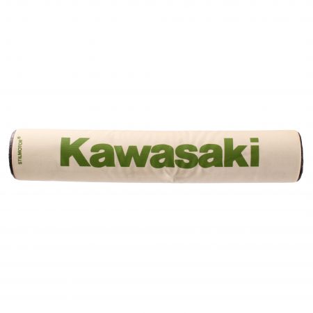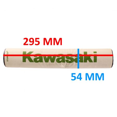 (R.24075) Vendo para colpi al traversino del manubrio nuovo di colore bianco con scritta Kawasaki di colore verde marca Stilmotor , con lunghezza totale 295 mm e diametro 54 mm , per misure vedere foto