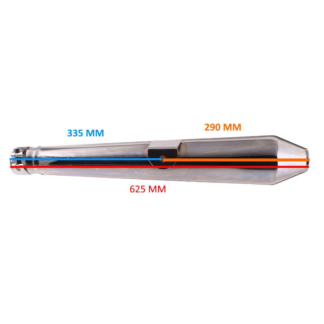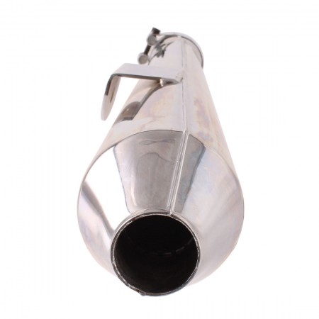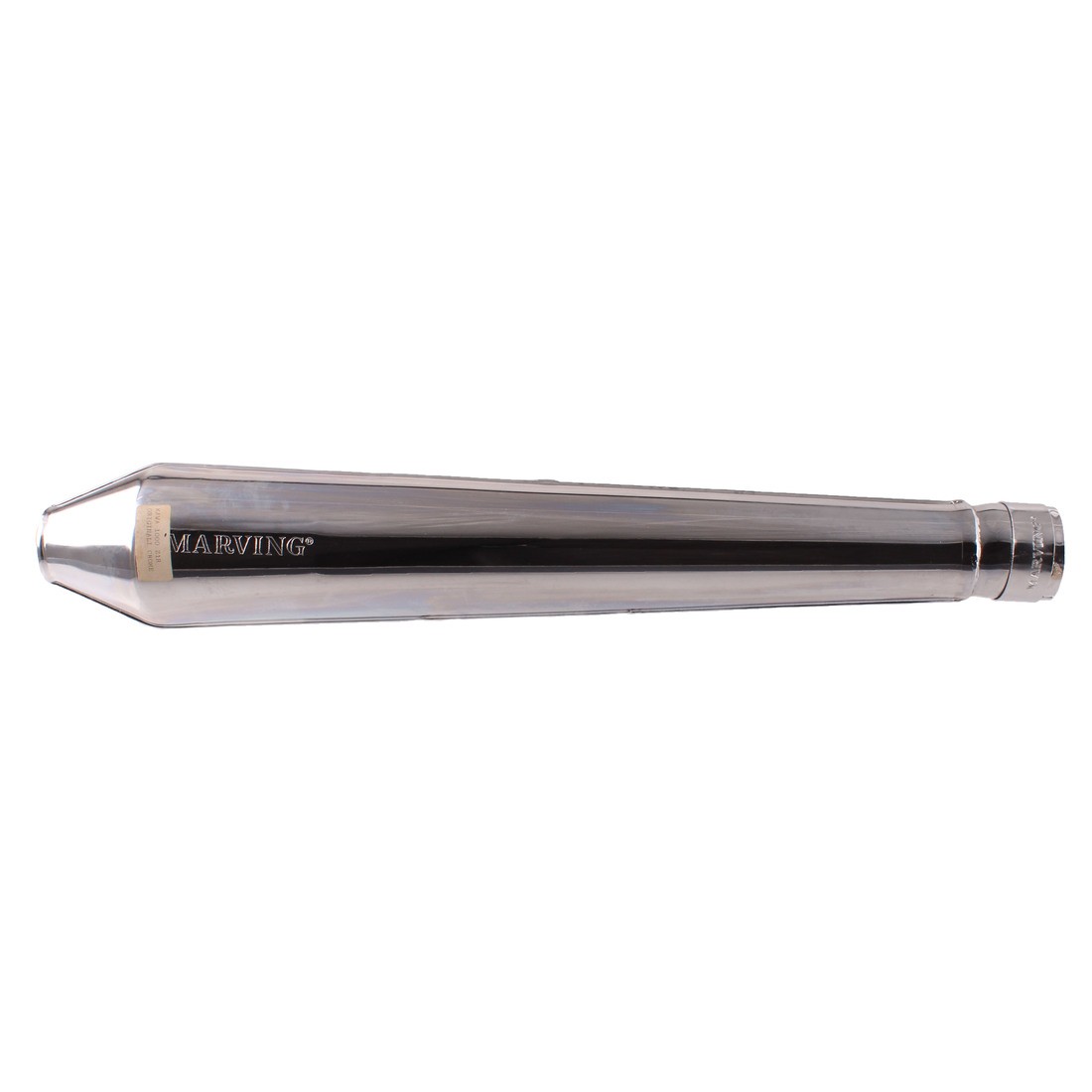 (R.18982) Vendo scarico lato destro nuovo cromato non omologato per Kawasaki Z1R 1000 cc per modelli con scarico 4 in 1 marchiata Marving con diametro interno imbocco 56 mm , lunghezza totale 625 mm , distanza imbocco e foro di fissaggio 335 mm , fondo di magazzino con leggeri segni di magazzinaggio , per misure vedere foto
