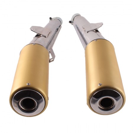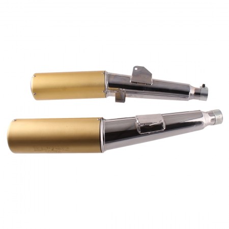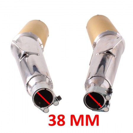 (R.19005) Vendo coppia scarichi nuovi non omologati probabilmente per Kawasaki GPZ 1000 o 1100 cc marchiati Marving Mach CTK 27 di colore cromato e oro con diametro interno imbocco 38 mm con lunghezza segmenti 270 e 360 mm , fondi di magazzino con leggeri segni di magazzinaggio , il prezzo si intende per la coppia , per misure vedere foto , controllare compatibilità prima dell'acquisto