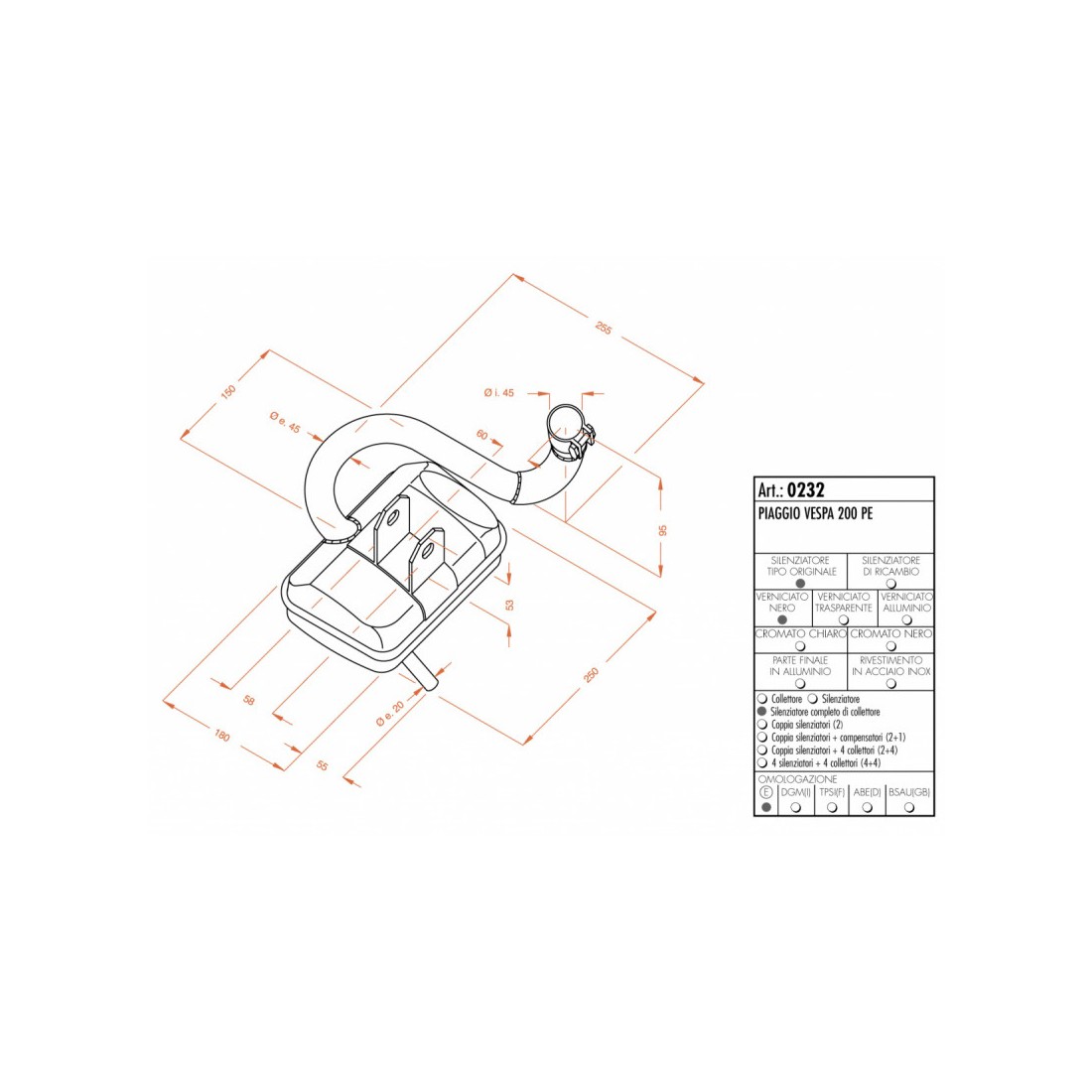 Marmitta per Vespa PE 200 - Sito 0232