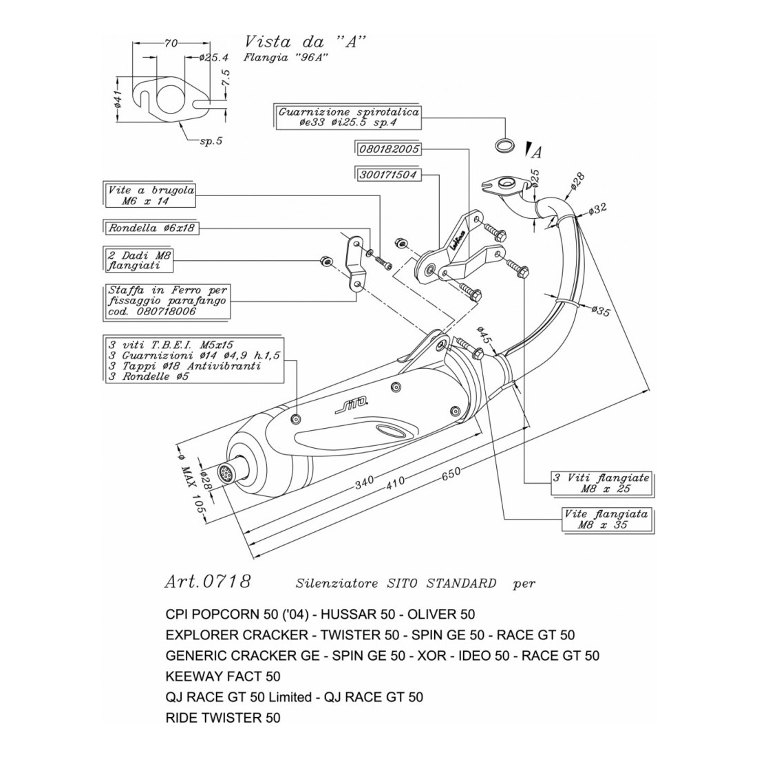 (R.20275) Vendo scarico nuovo per scooter 50 cc Keeway F-Act - CPI Popcorn - Hussar - Oliver - Explorer Cracker - Twister - Spin - Race GT - XOR - Ideo - QJ Race GT - Ride Twister marca Sito con codice 0718 , per misure e applicazioni vedere foto
