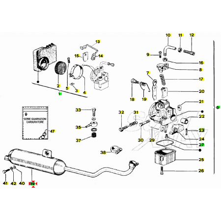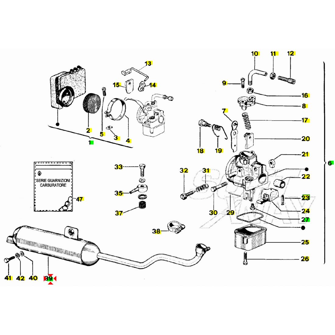 (R.22973) Vendo scarico nuovo simile a codice Piaggio 2472605 per Piaggio Ciao PX , per applicazioni e spaccato vedere foto