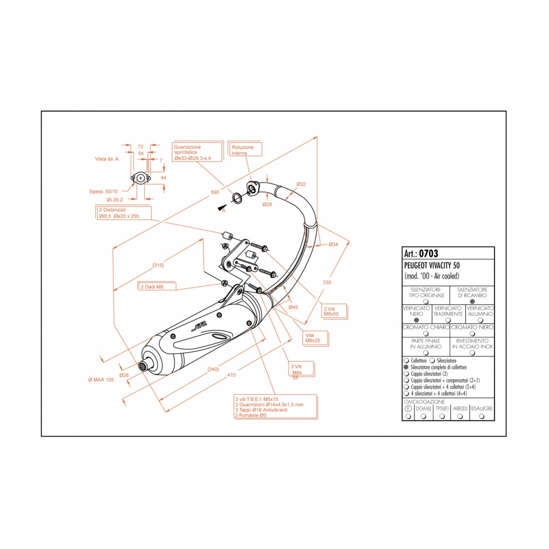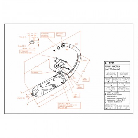 (R.14660) Vendo marmitta nuova per Peugeot Vivacity 50 cc dal 1999 marca Sito con codice 0703 di colore nero , per misure vedere foto