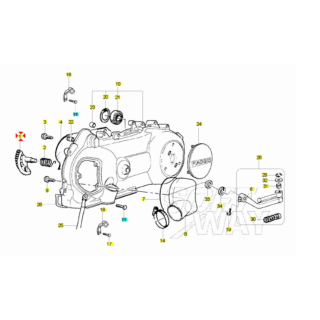 (R.21810) Vendo settore messa in moto nuovo per Piaggio Vespa ET4 125 cc dal 1999 - Vespa LX 125 e 150 cc dal 2005 - Zip 125 cc dal 2000 - Liberty 125 cc dal 2001 simile a codice Piaggio 830284 , per applicazioni e spaccato vedere foto