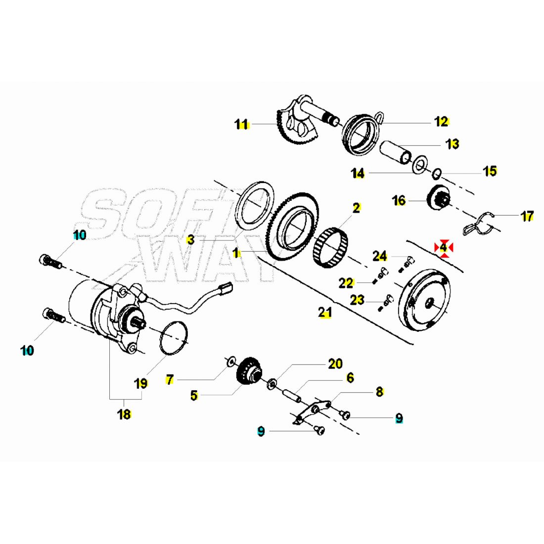 (R.21991) Vendo ruota libera dell'avviamento nuova simile a codice Keeway 34110G02F00A per Keeway 2 tempi tipo ATV 50 EC2 - Focus - Hurricane - Matrix - ATV Off Road - F-Act - RY6 - RY8 - Flash - F-Act Evo - Goccia - RY8 Sport F-Act Evo Sport - Zahara - X-Blade , per applicazioni e spaccato vedere foto