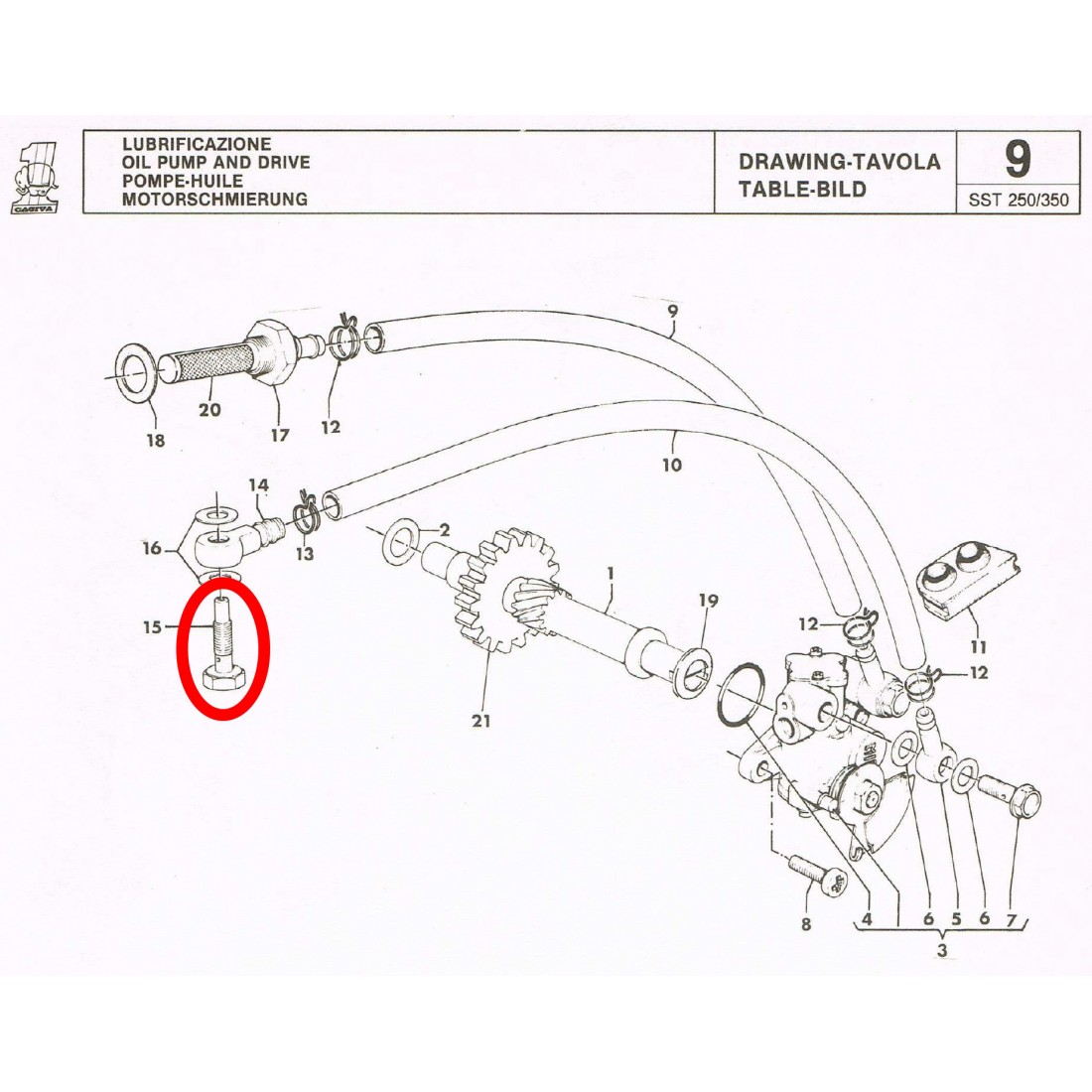 (R.18698) Vendo vite condotto pompa olio nuova per Cagiva SST 125 - 250 o 350 cc - Ala Verde 250 o 350 cc - Ala Blu 250 o 350 cc con codice 800027994 - 27994 - 800032583 - 32583 con lunghezza 24 mm e diametro 4,5 mm con diametro filetto 6 mm , per misure vedere foto , controllare compatibilità prima dell'acquisto
