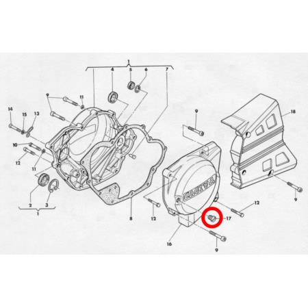 (R.20378) Vendo tappo ispezione fasatura sul carter sinistro nuovo per Cagiva Ala Rossa 350 cc con codice Cagiva 800036038 o 36038 con diametro filetto 13,5 mm e testa diametro 18 mm , per misure ed esploso vedere foto