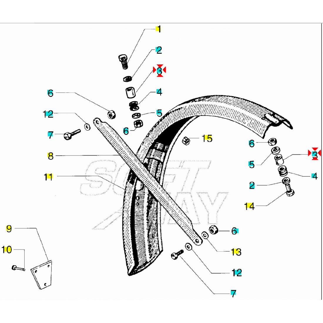 (R.23424) Vendo distanziale interno nuovo del gommino del parafango posteriore per Piaggio Ciao e Ciao Mix Teen dal 1980 e distanziale per altre applicazioni su Beverly 300 e 350 dal 2011 - Puch P1 Tre 50 dal 1993 - Vespa 946 125 dal 2013 - X10 125 , 350 e 500 dal 2012 , per applicazioni e spaccato vedere foto