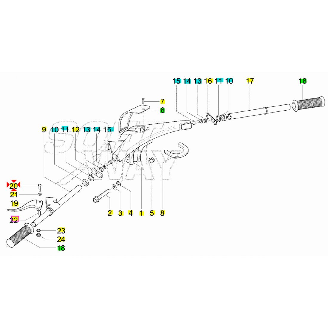 (R.23776) Vendo vite della leva freno e frizione con dado nuova per Piaggio Vespa PK XL Rush Plurimatic 50 e 125 dal 1985 - Vespa PK 50 dal 1982 - Vespa N 50 dal 1989 - Ape TM Diesel 420 dal 2005 - Ape MP601 Classic 420 - Ape P501 P601 220 dal 1978 - Ape Calessino 200 e 420 dal 2007 - Ape Classic 400 dal 2014 , originali Piaggio con codici 018517 e 015329 , per applicazioni e spaccato vedere foto