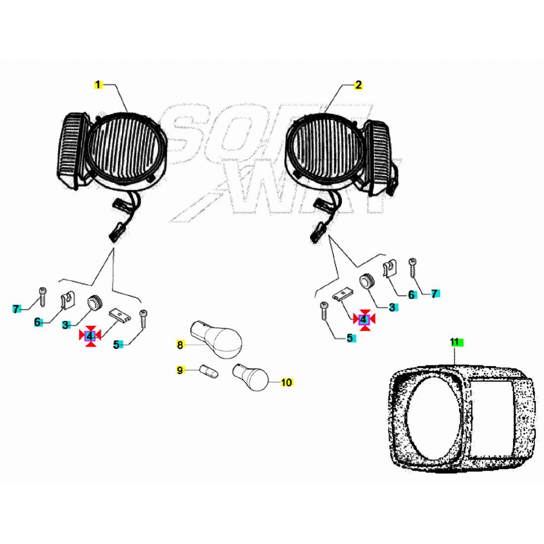 (R.23910) Vendo molletta fissaggio sotto al gruppo ottico nuova per Piaggio Ape Calessino 200 e 420 dal 2007 - Ape Classic 400 dal 2014 - Ape MP P501 P5601 220 dal 1978 , originale Piaggio con codice 119735 , per applicazioni e spaccato vedere foto