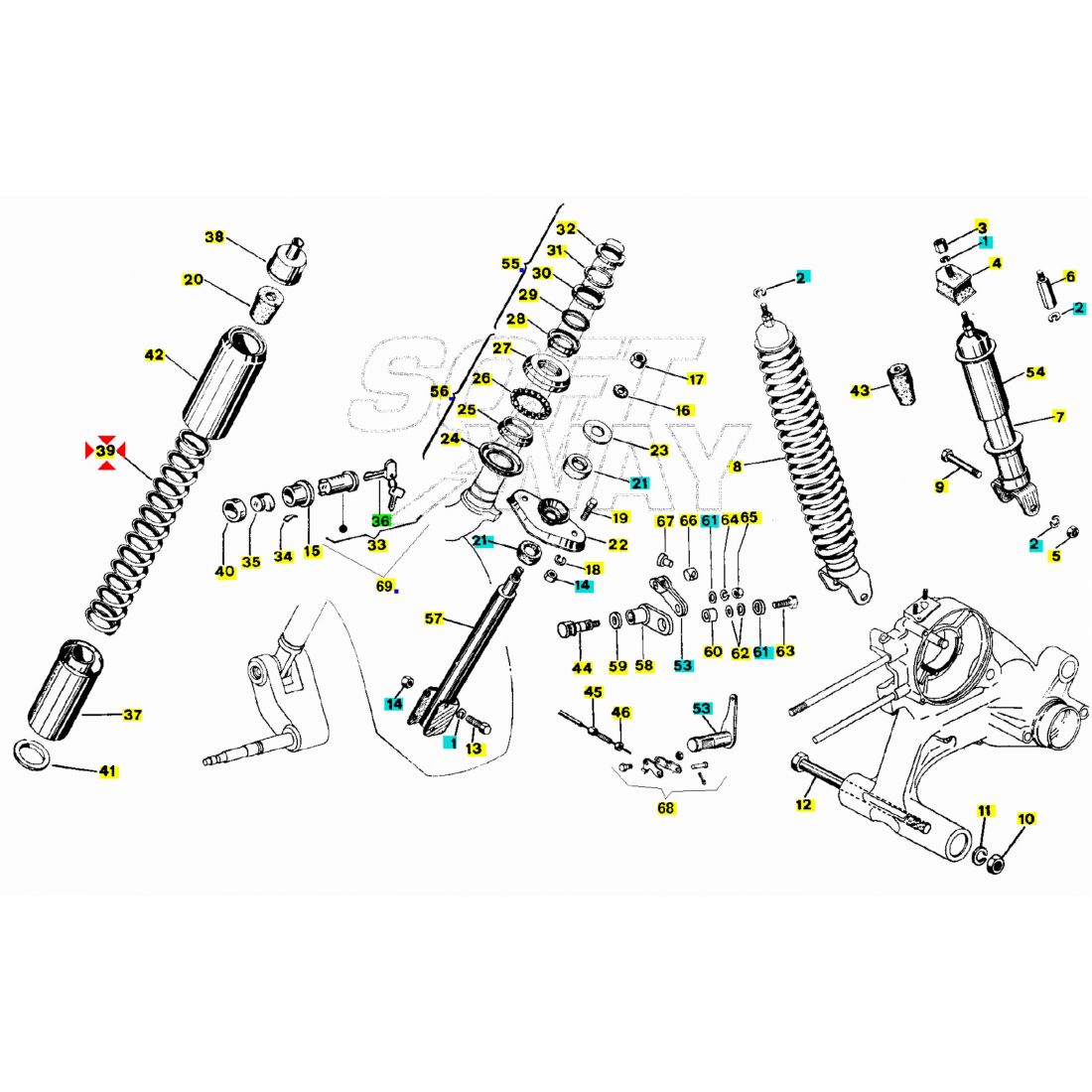 (R.22819) Vendo molla della sospensione anteriore nuova originale Piaggio con codice 196304 per Piaggio Vespa PX 125 dal 1998 - Vespa PX T5 125 dal 1985 - Vespa PX E Arcobaleno 80 , 125 , 150 e 200 dal 1981 - Vespa P 125 X dal 1978 - Vespa P 200 E dal 1978 , per applicazioni e spaccato vedere foto