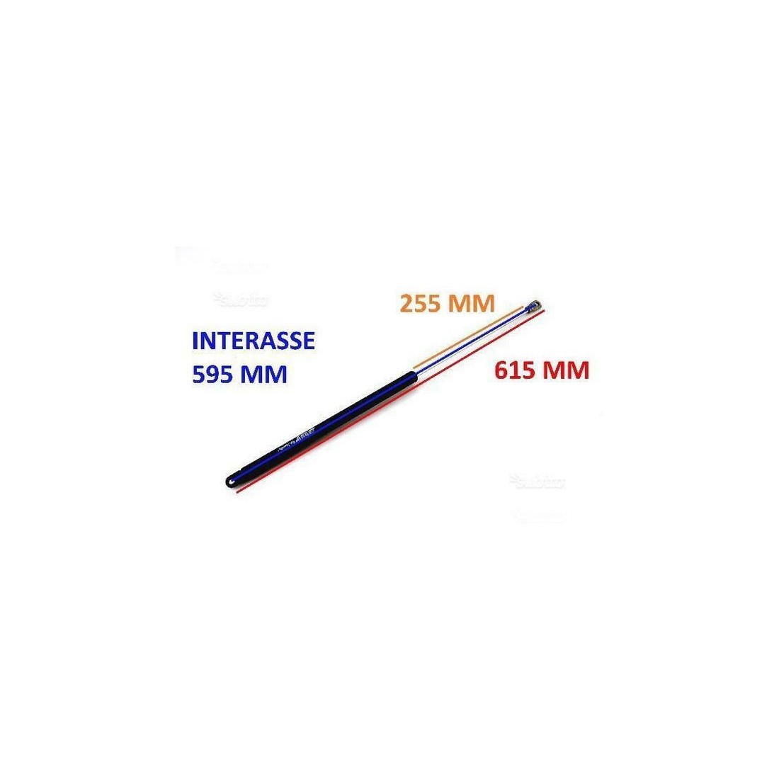 (R.5221) Vendo molleggio ITT Way Assauto usato con interasse fori 595 mm e lunghezza massima estensione 615 mm , interasse fori ammortizzatore chiuso 345 mm , marchiato MCS 1801 911 16 160 1 , per misure vedere foto