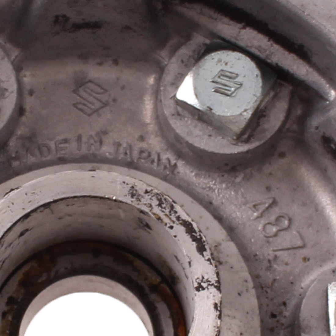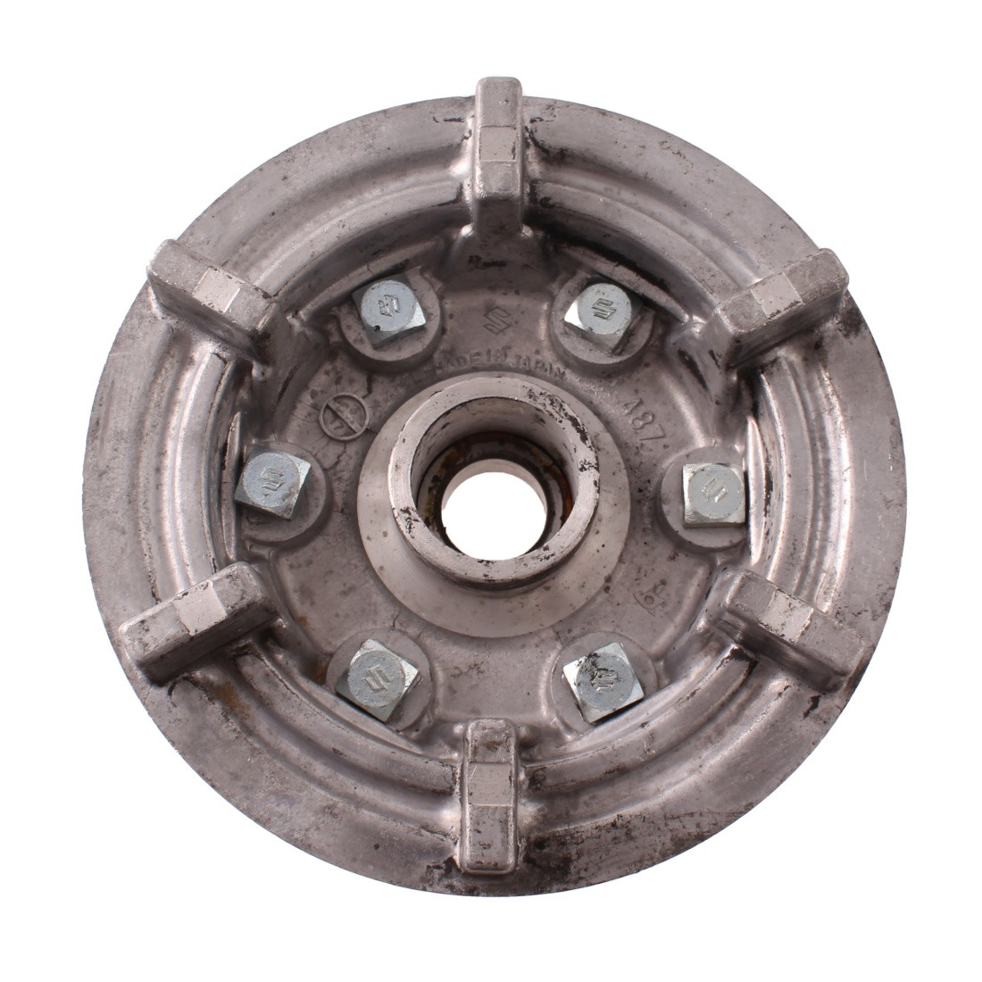 (R.20691) Vendo mozzo parastrappi porta corona usato per Suzuki GS 750 cc dal 1977 al 1979 marchiato 487 e con logo Suzuki