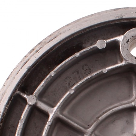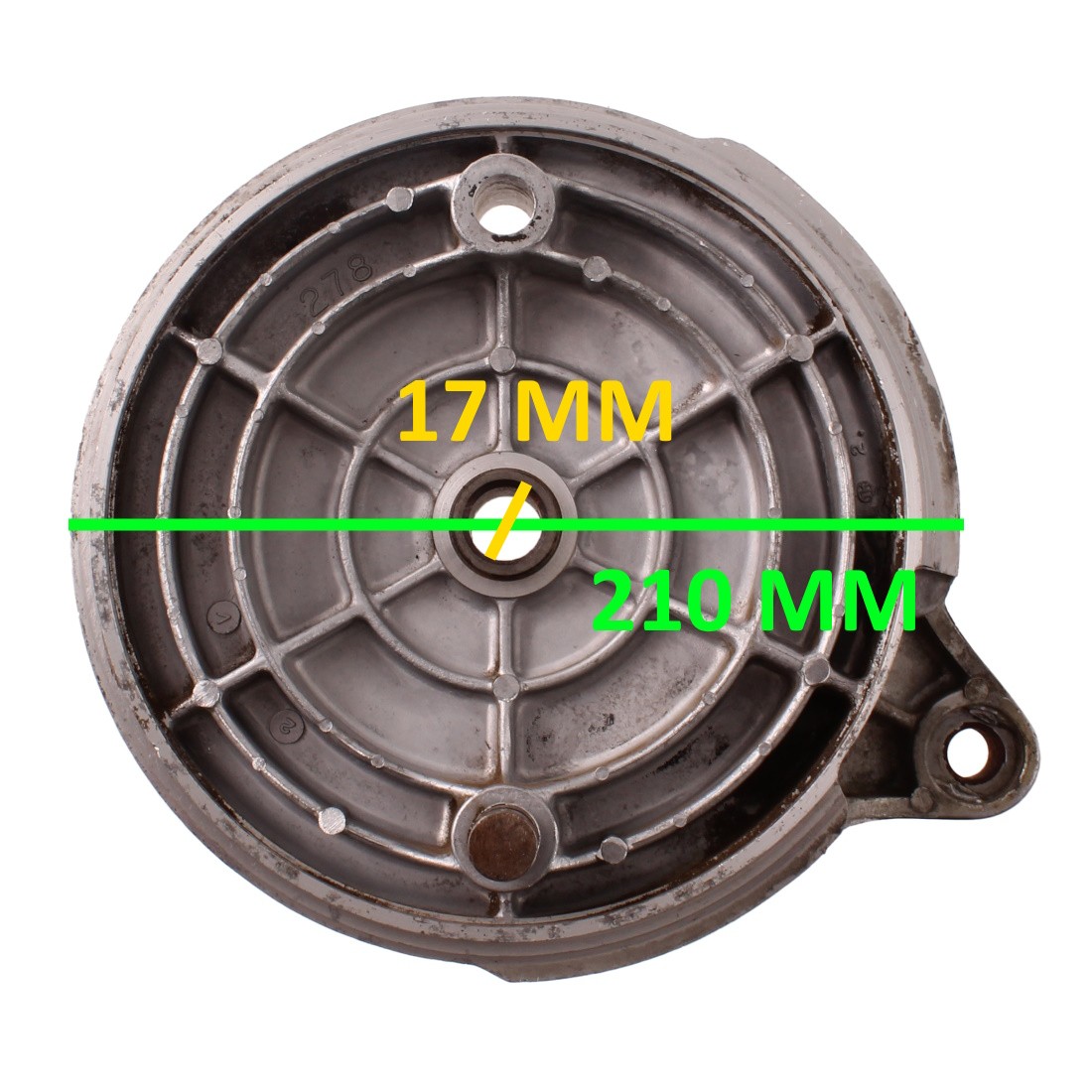 (R.20695) Vendo piatto porta ganasce freno posteriore usato in alluminio per Yamaha DS 7 250 cc dal 1970 marchiato 278 con diametro esterno da 210 mm e foro centrale da 17 mm , per misure vedere foto