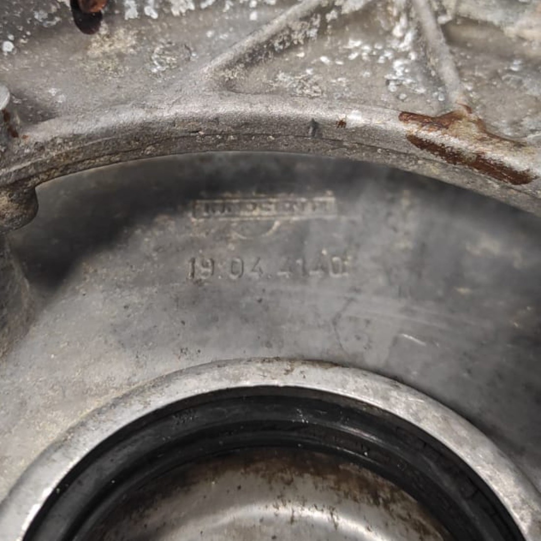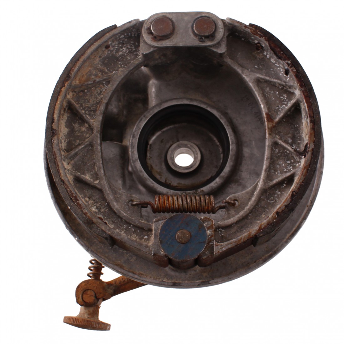 (R.20732) Vendo piatto portaganasce freno anteriore usato ed originale Innocenti per Lambretta LI 125 e 150 cc 3 serie - Special 125 e 150 cc - SX 150 e 200 cc - DL 125 - 150 - 200 cc marchiato 19044140 e con logo Innocenti