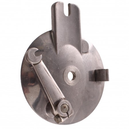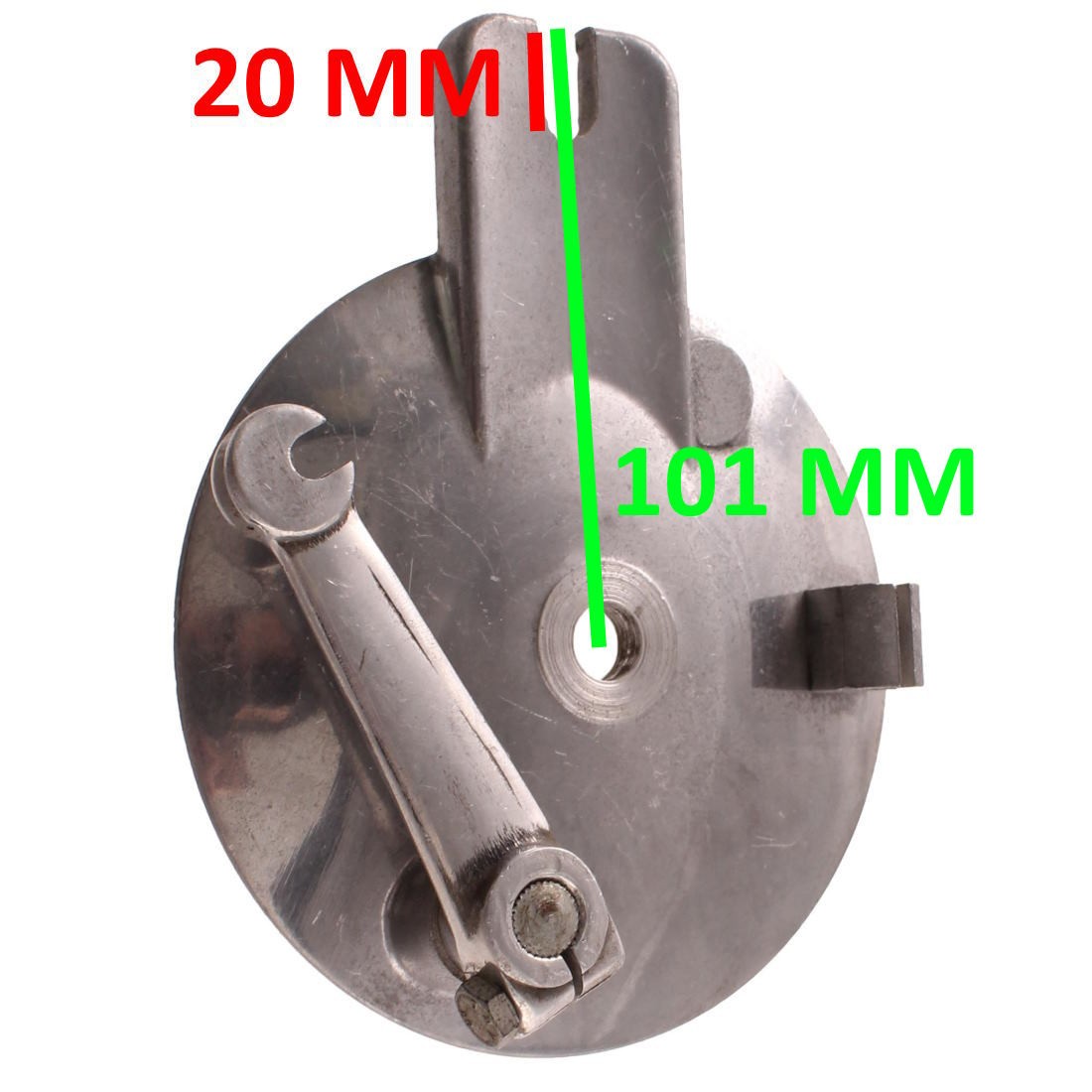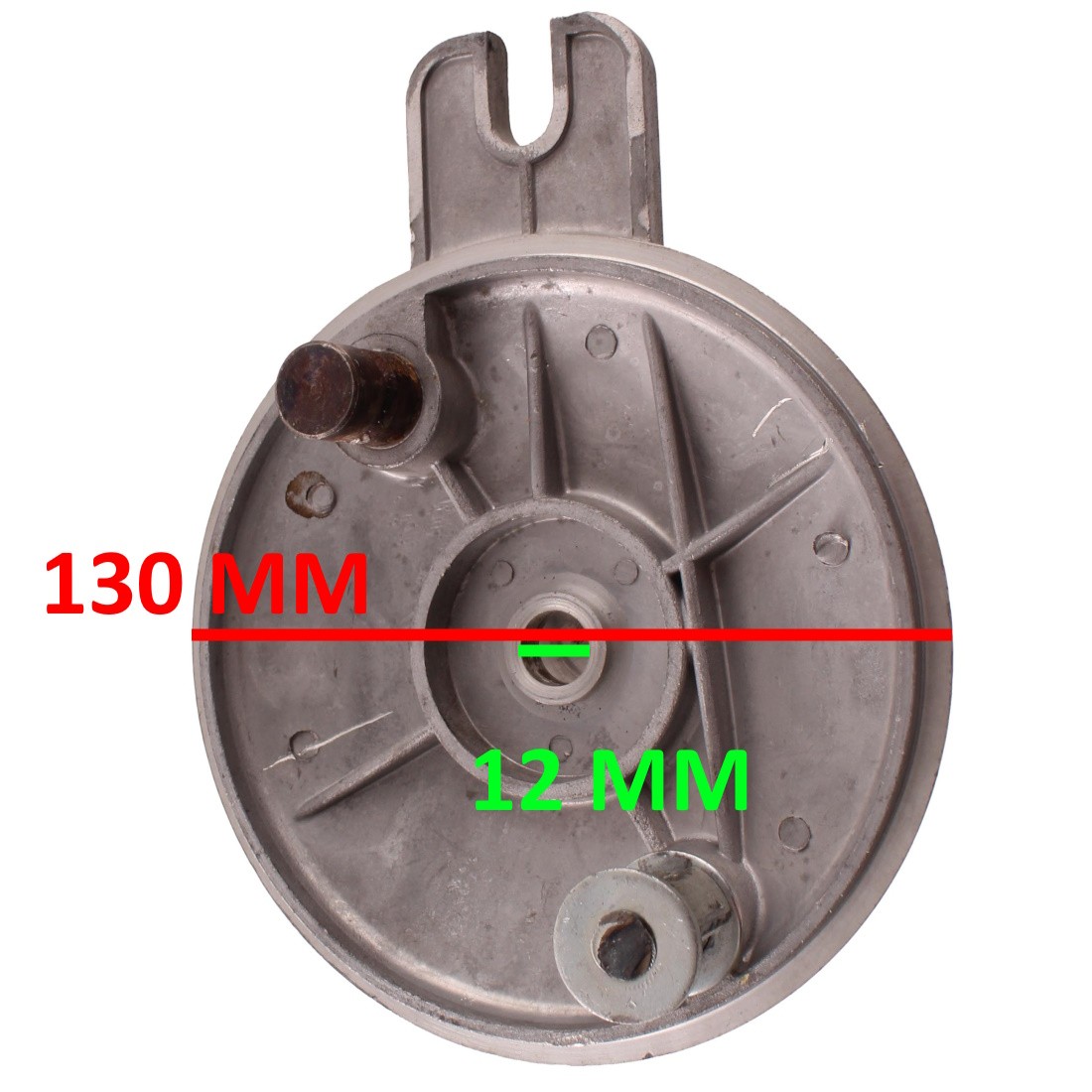 (R.21307) Vendo piatto porta ganasce freno anteriore usato in alluminio per ciclomotori vari vintage con diametro 130 mm , foro centrale da 12 mm e interasse foro di innesto 101 mm , per misure vedere foto