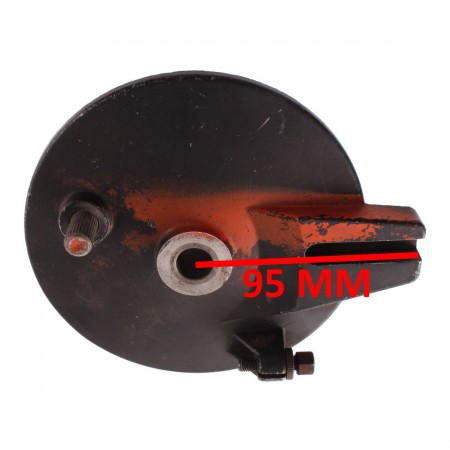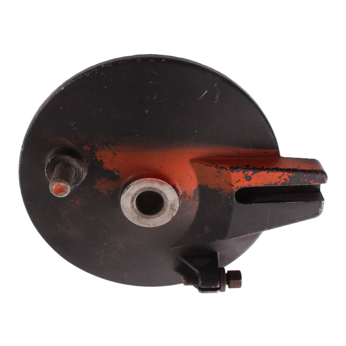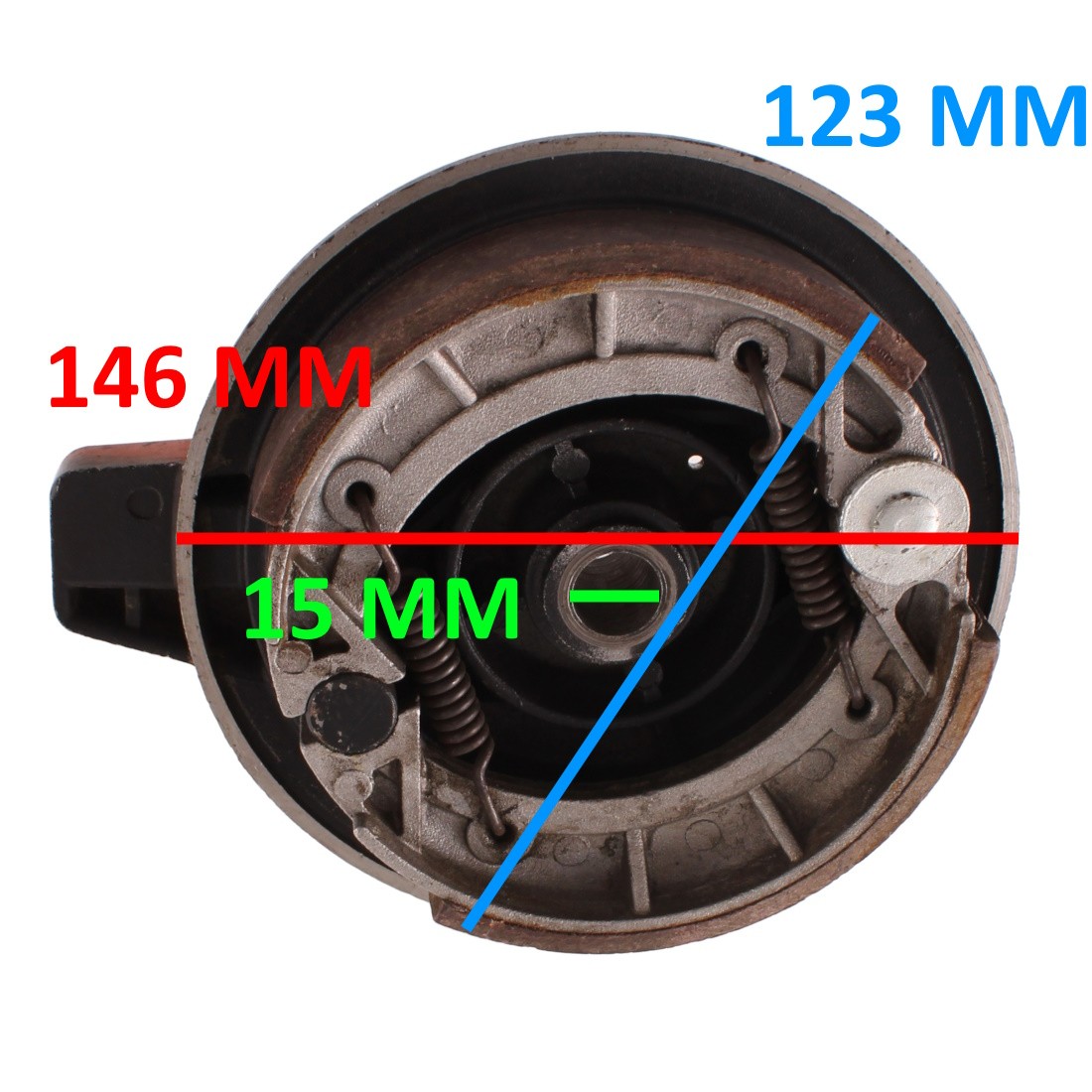 (R.21310) Vendo piato porta ganasce freno posteriore destro usato probabilmente per Fantic Motor Regolarità con diametro 146 mm , diametro ceppi 123 mm , foro centrale da 15 mm e interasse inserto foro da 95 mm , controllare misure e posizione del forellino per la molla ritorno prima dell'acquisto