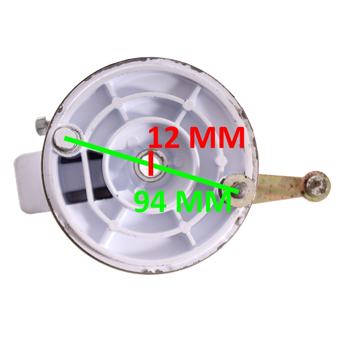 (R.11147) Vendo piatto porta ganasce freno anteriore usato marca Grimeca con diametro foro centrale da 12 mm e interasse 94 mm , per misure vedere foto