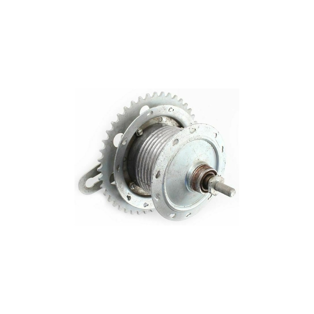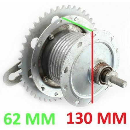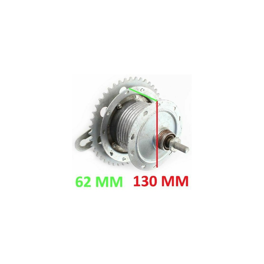 (R.10269) Vendo mozzo ruota posteriore nuovo per ciclomotori vari con porta ruota libera per la messa in moto , completo di corona a 4 fori con 44 denti , per misure vedere foto