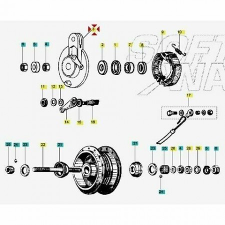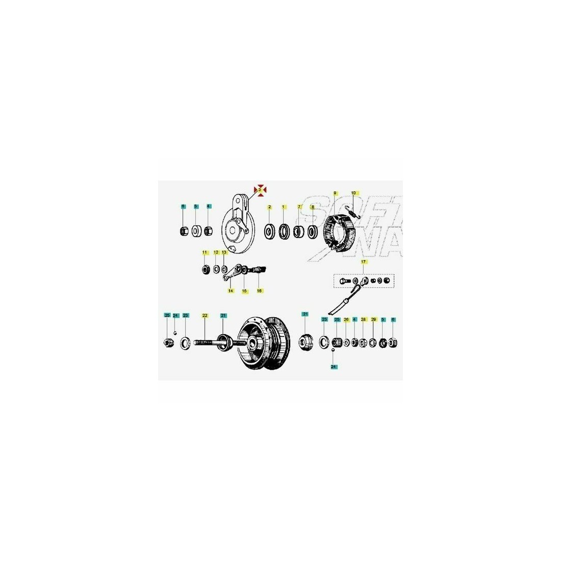 (R.1150) Vendo flangia ganasce nuova per ruota anteriore in lega Piaggio Grillo dal 1989 telai CXM e CXV con codice Piaggio 265081 , per misure con applicazioni ed esploso vedere foto