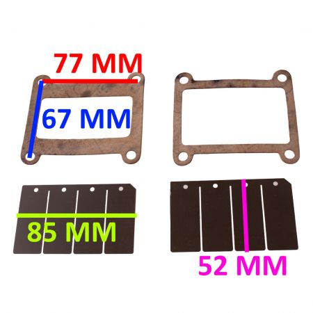 (R.23459) Vendo kit di revisione del pacco lamellare nuovo per motori Cagiva 250 epoca con interasse lato lungo 77 mm e interasse lato corto 67 mm , con larghezza lamelle 85 mm e altezza lamelle 52 mm , per misure vedere foto