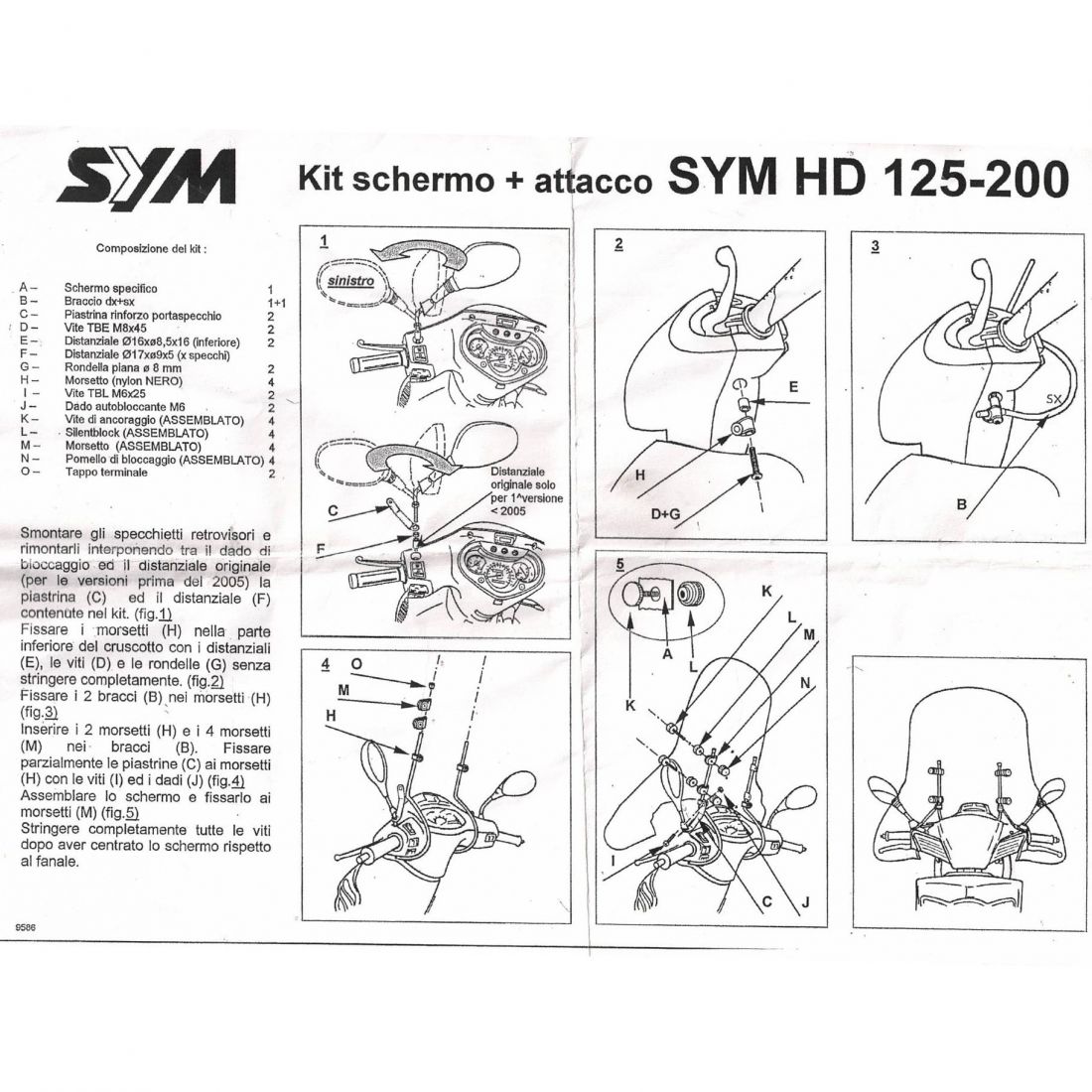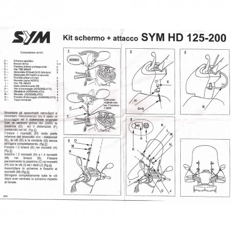 (R.23703) Vendo kit di attacchi del parabrezza originale nuovo per Sym HD 125 e 200 , per istruzioni di montaggio vedere foto