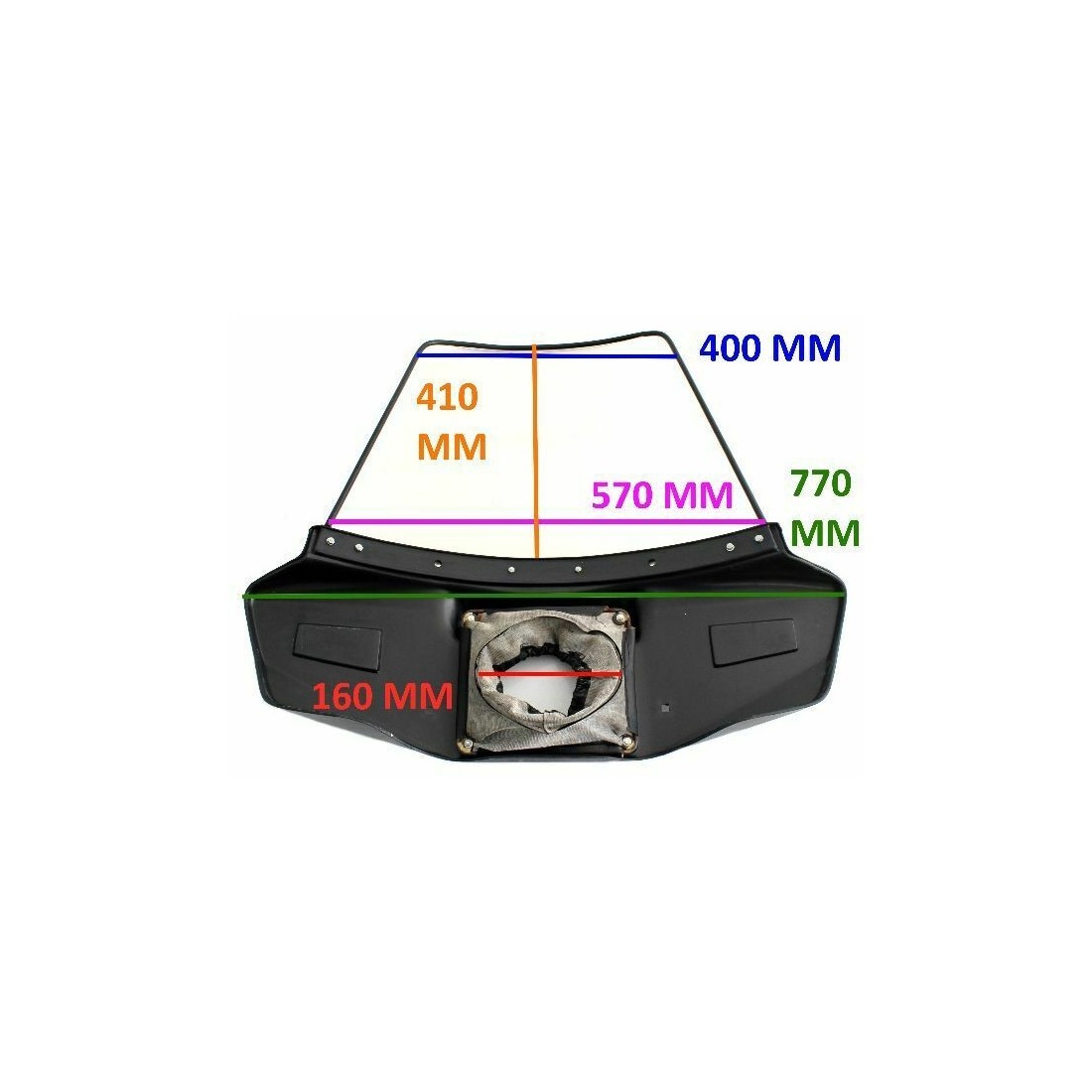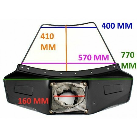 (R.9185) Vendo vetro parabrezza nuovo marca Cuppini per Piaggio Vespa 50 Special con spoiler nero e diametro foro fanale 160 mm e altezza totale 680 mm e larghezza massima 770 mm , altezza parabrezzino 410 mm, per misure vedere foto